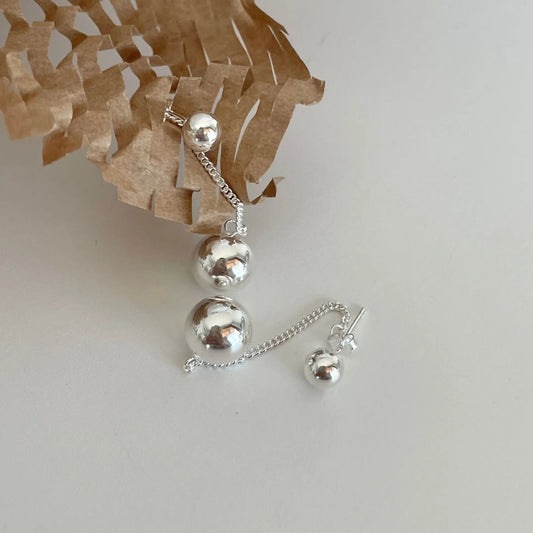 1 pcs 925 Sterling Silver Beads Line Tassel Earrings For Women French Light Luxury Niche High Sense Of Temperament Net Red