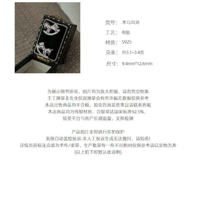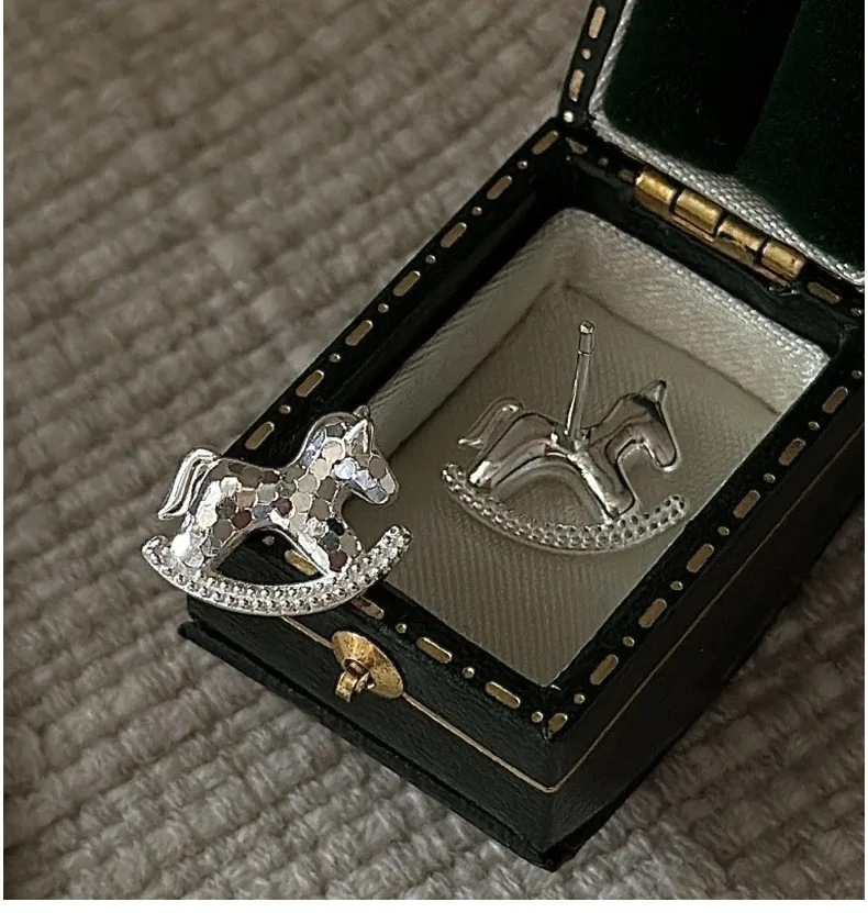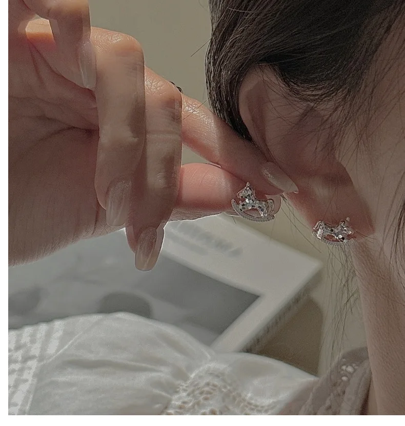 100% 925 Sterling Silver Crushed Ice Pony Earrings Korean Style Simple Basic Ear Accessories