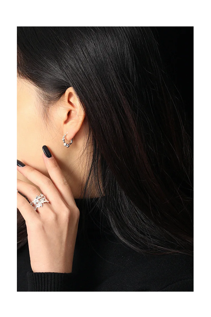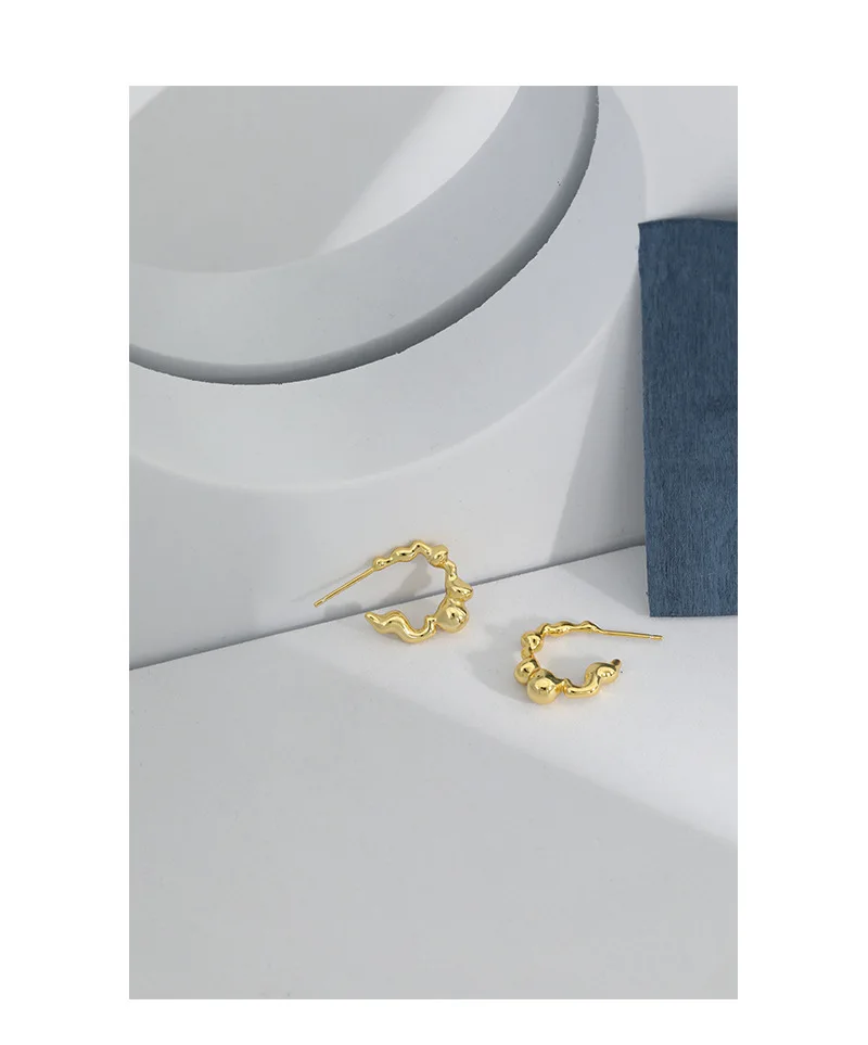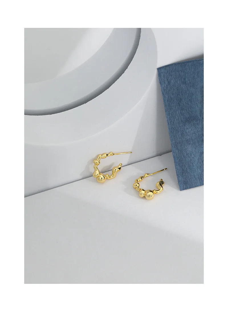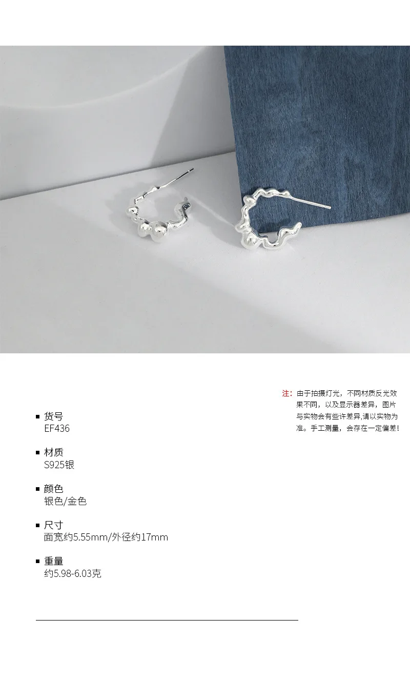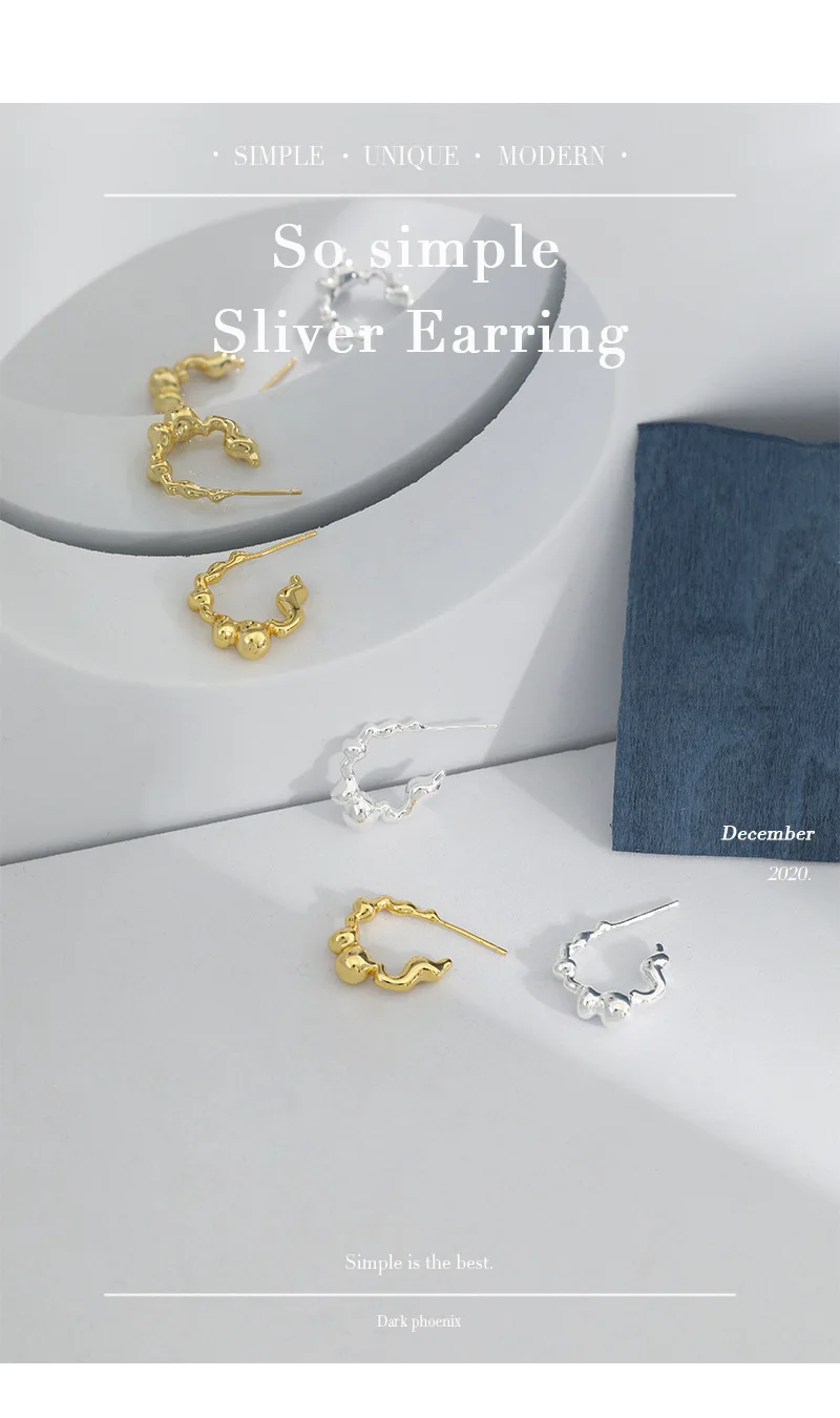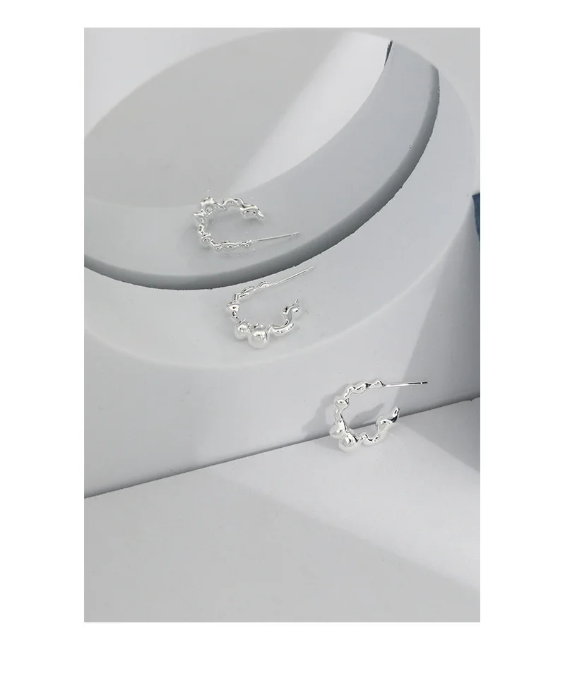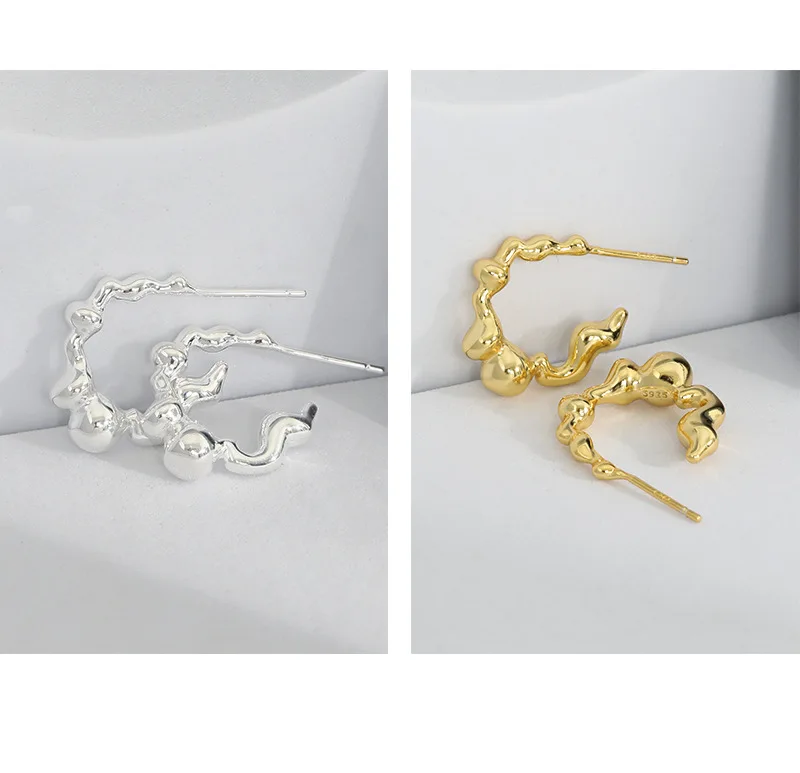 100% 925 Sterling Silver Minimalistic Geometric irregular C Shape Stud Earrings For Women Personality Wild Ins Elegant