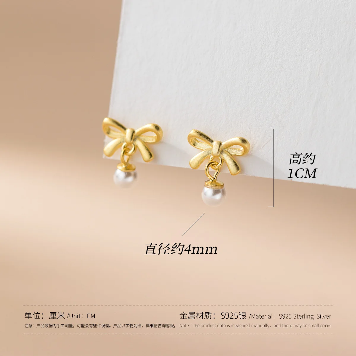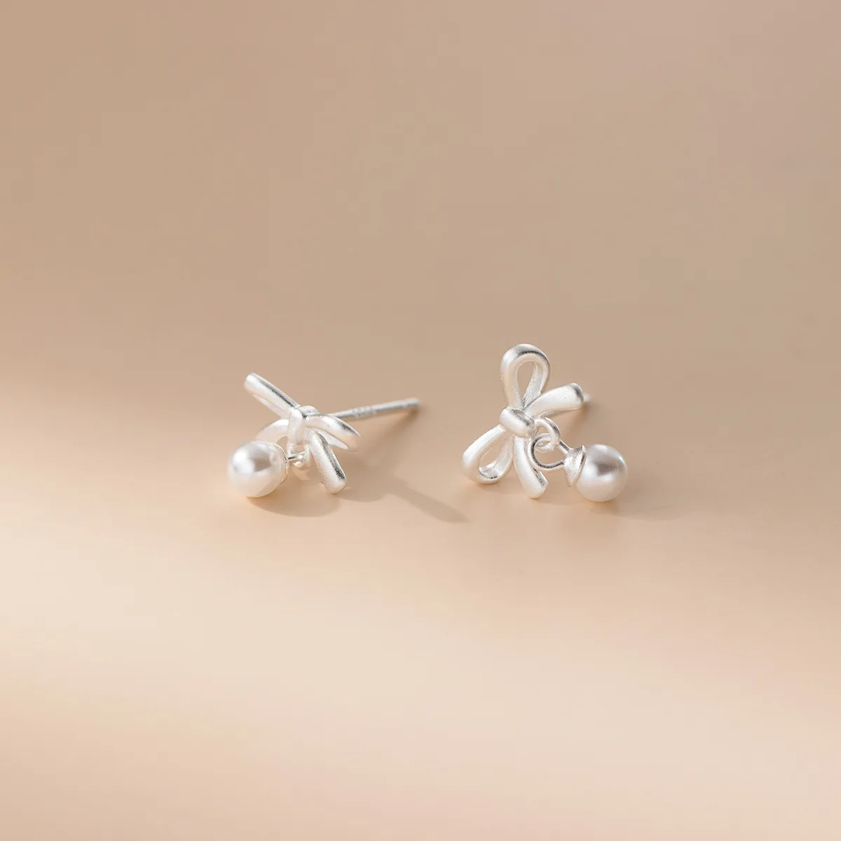 100% 925 Sterling Silver Pearl Earrings for Women Bow Earrings Women Ribbon Stud Earrings Jewelry Gift