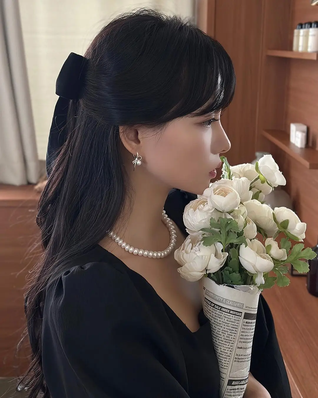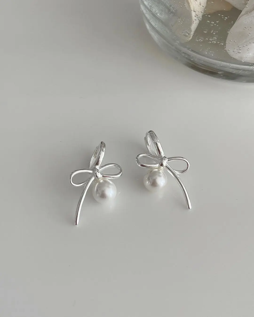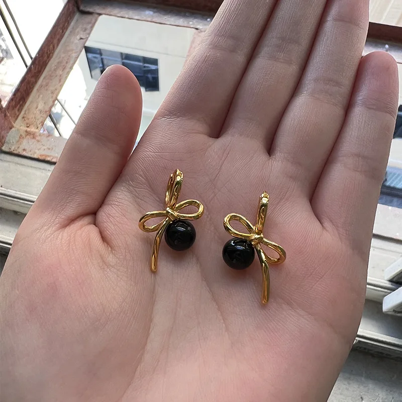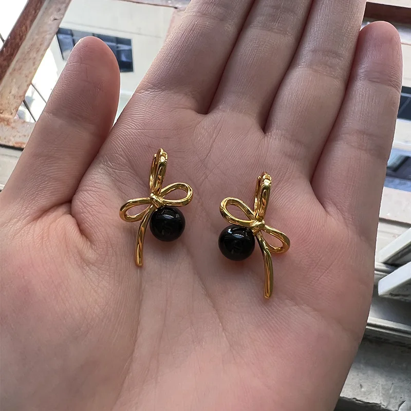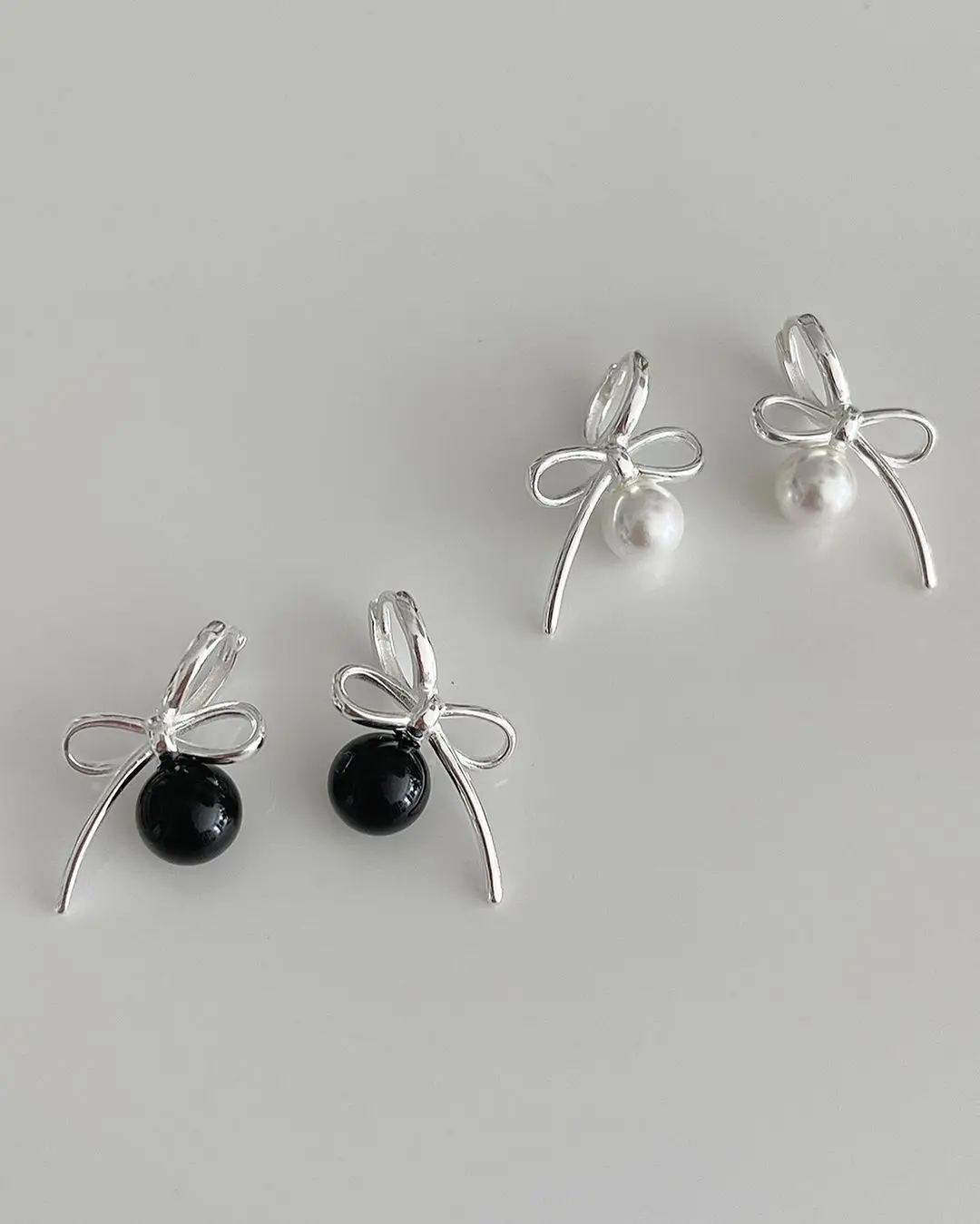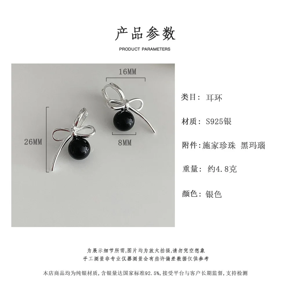 100% 925 Sterling Silver Pearl Stud Earrings for Women Korean Black Agate Butterfly Knot Bowknot Rose Statement Wedding Jewelry