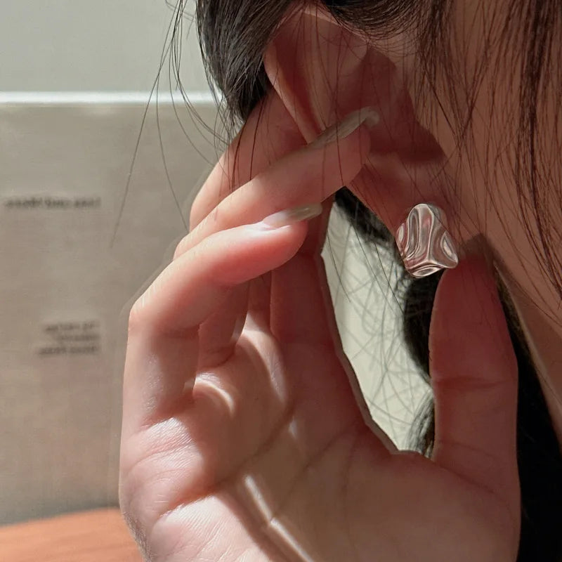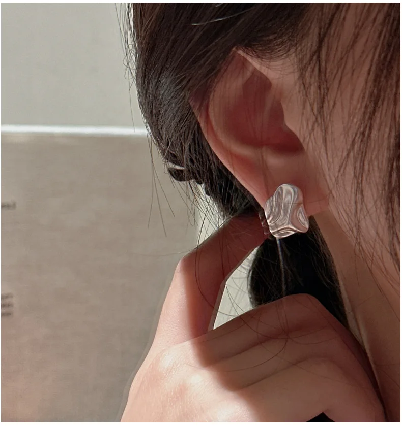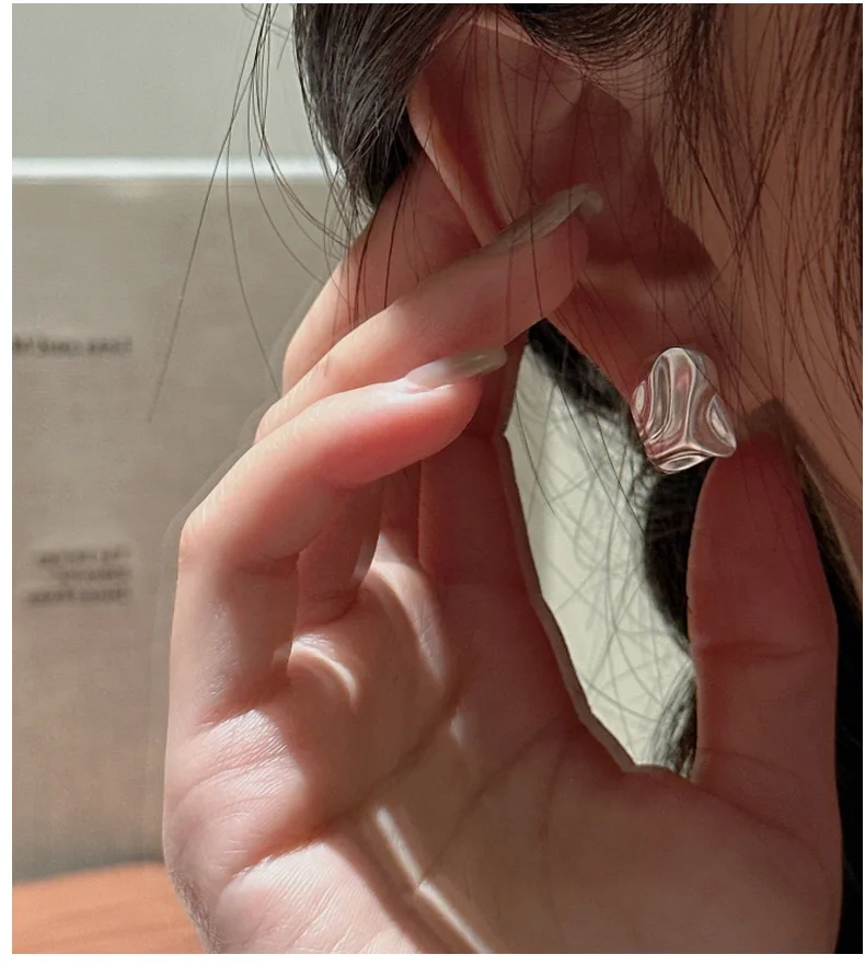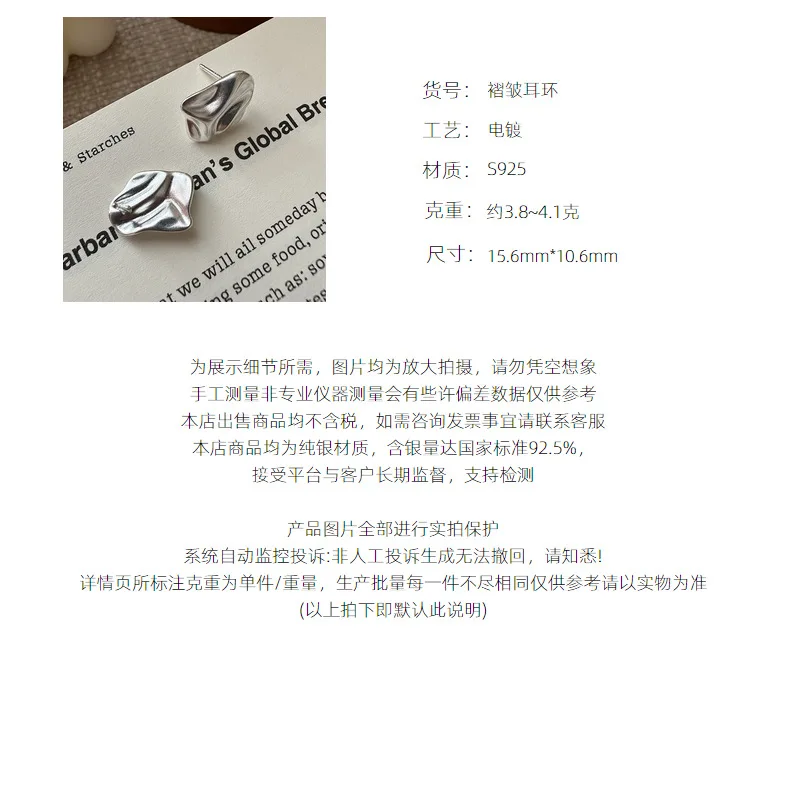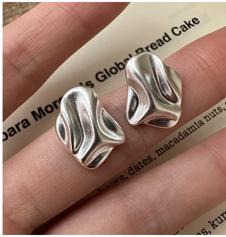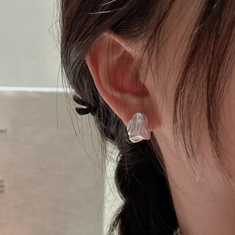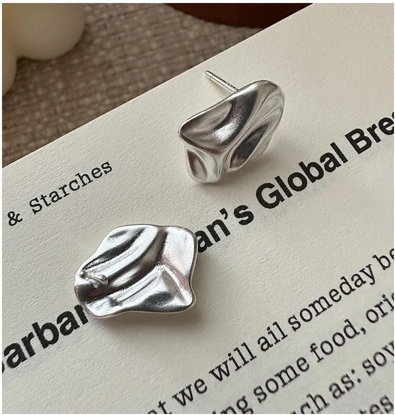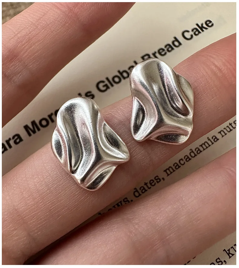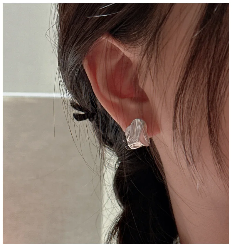 100% 925 Sterling Silver Retro Fold Texture Stud Earrings Exquisite Geometric Jewelry Women Earrings Gift