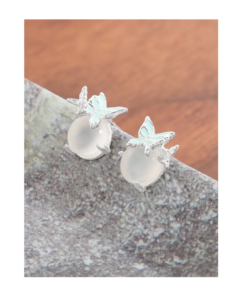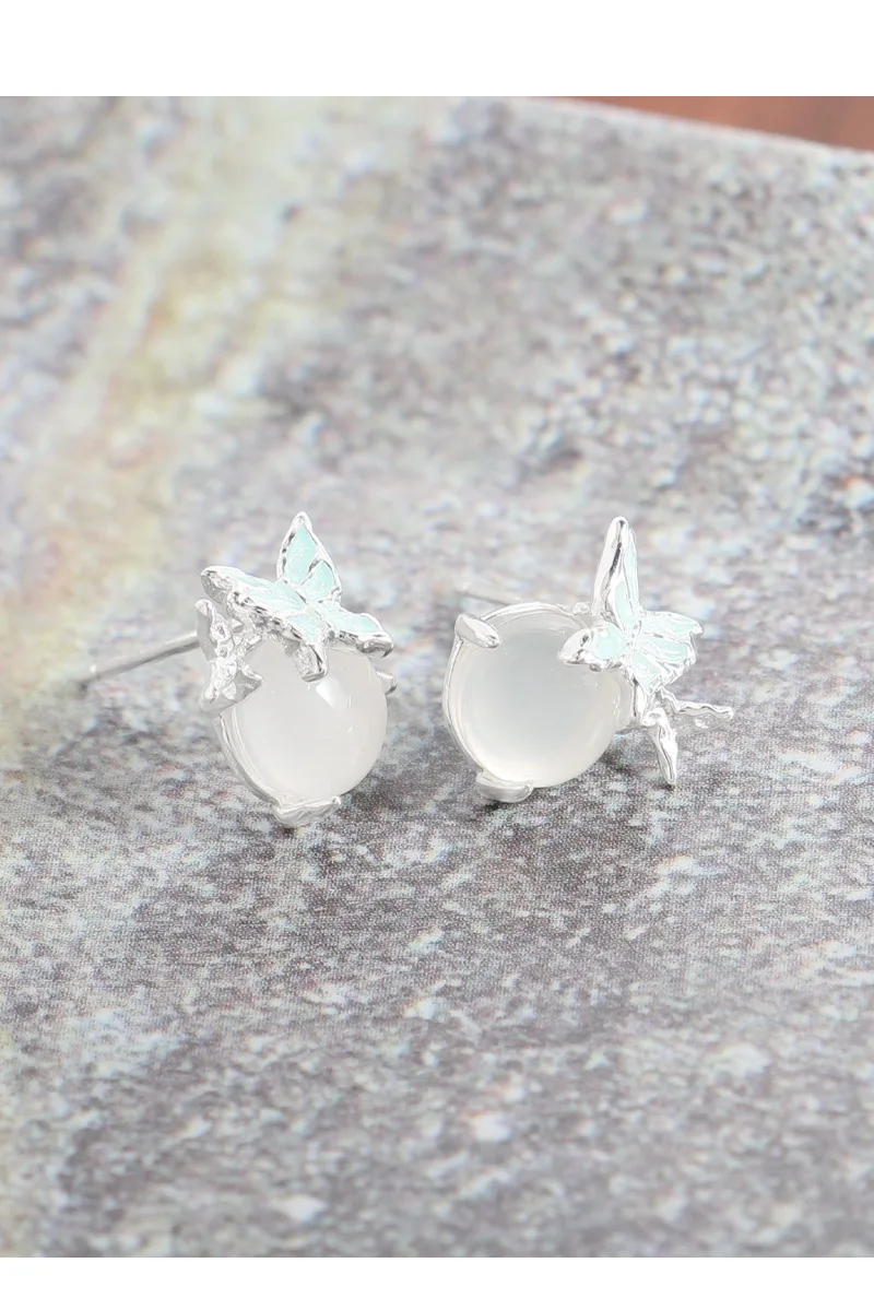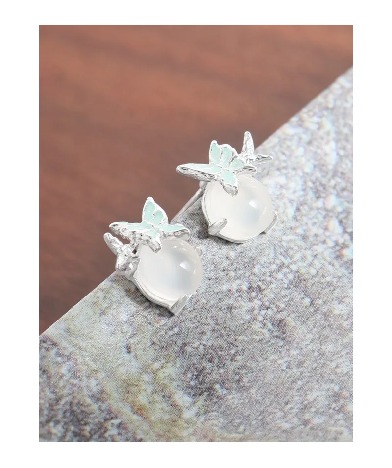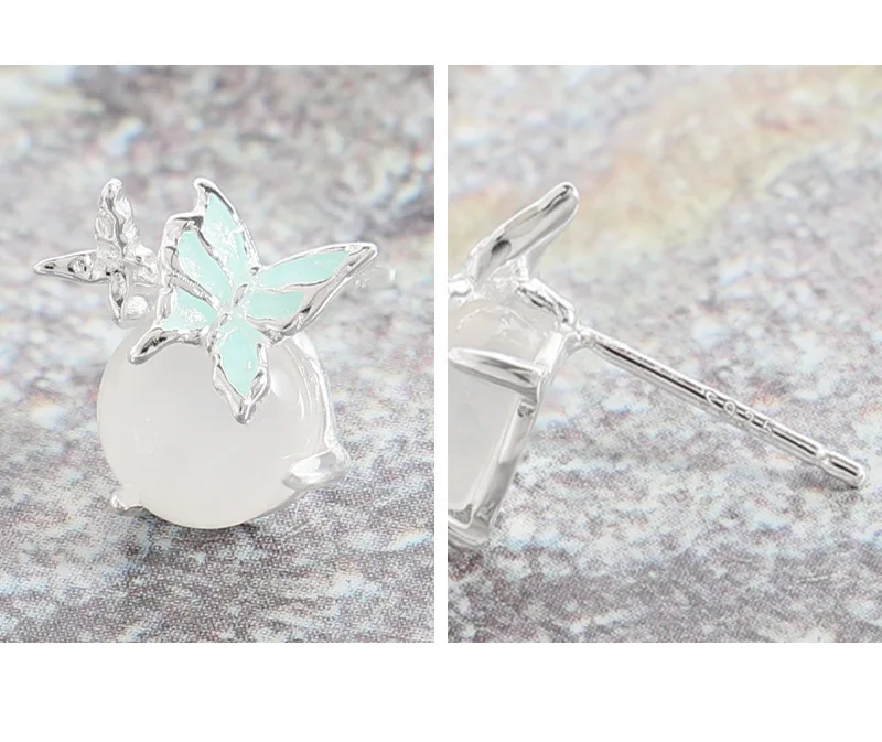100% 925 Sterling Silver Simple and versatile light blue drop glue butterfly white agate earrings Korean version jewelry