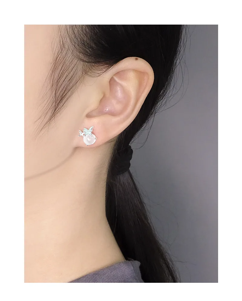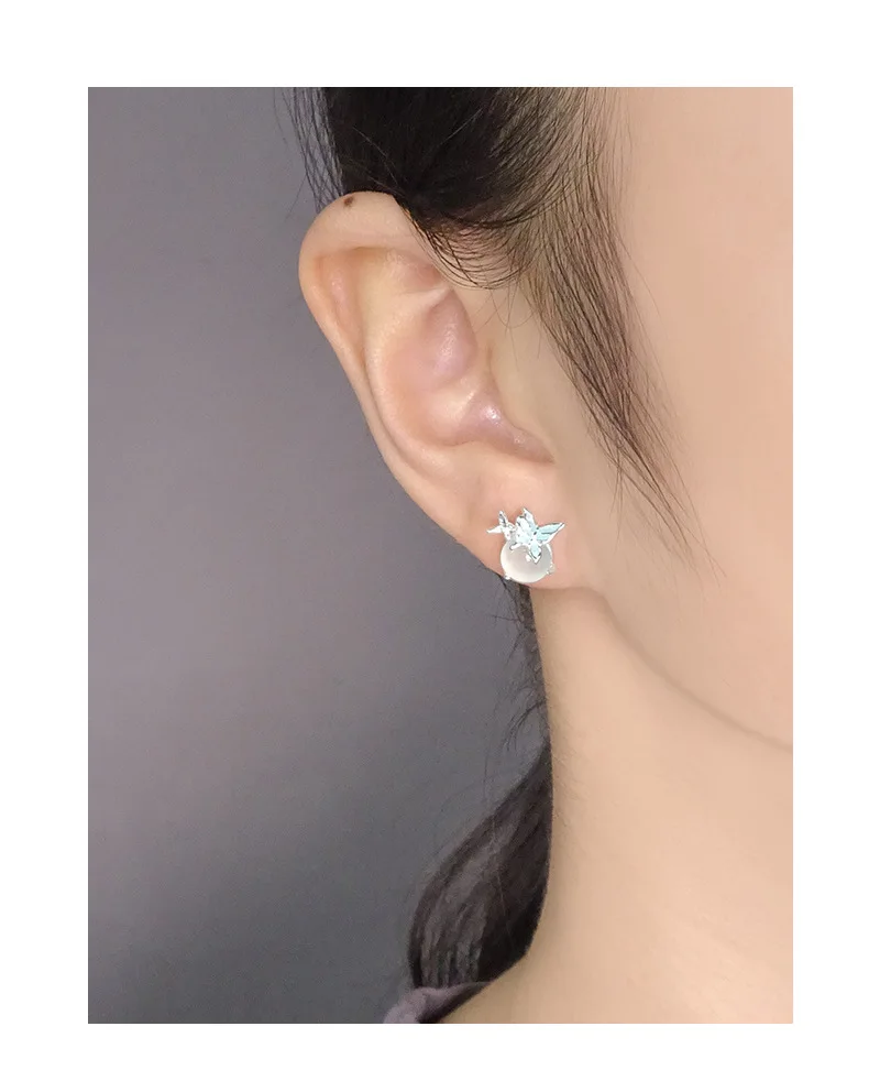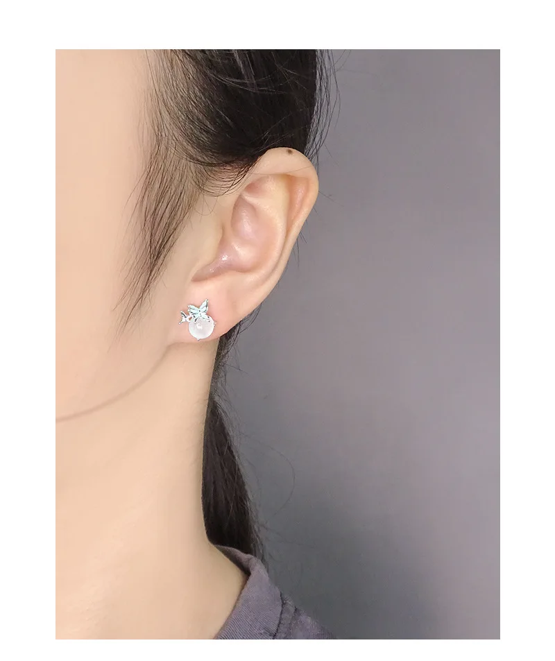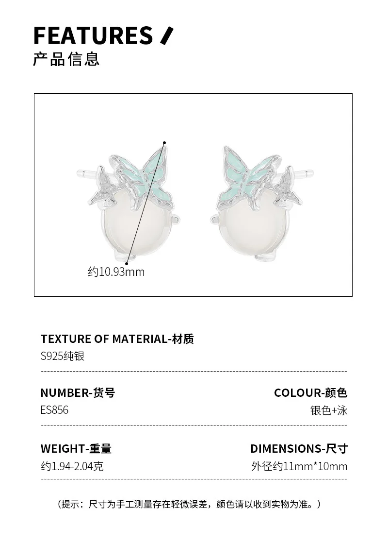 100% 925 Sterling Silver Simple and versatile light blue drop glue butterfly white agate earrings Korean version jewelry