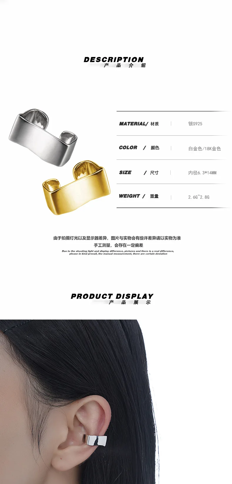 100% 925 Sterling Silver Smooth Surface Ear Cuff Clip on Earrings For Women Girl Without Piercing Earings Jewelry