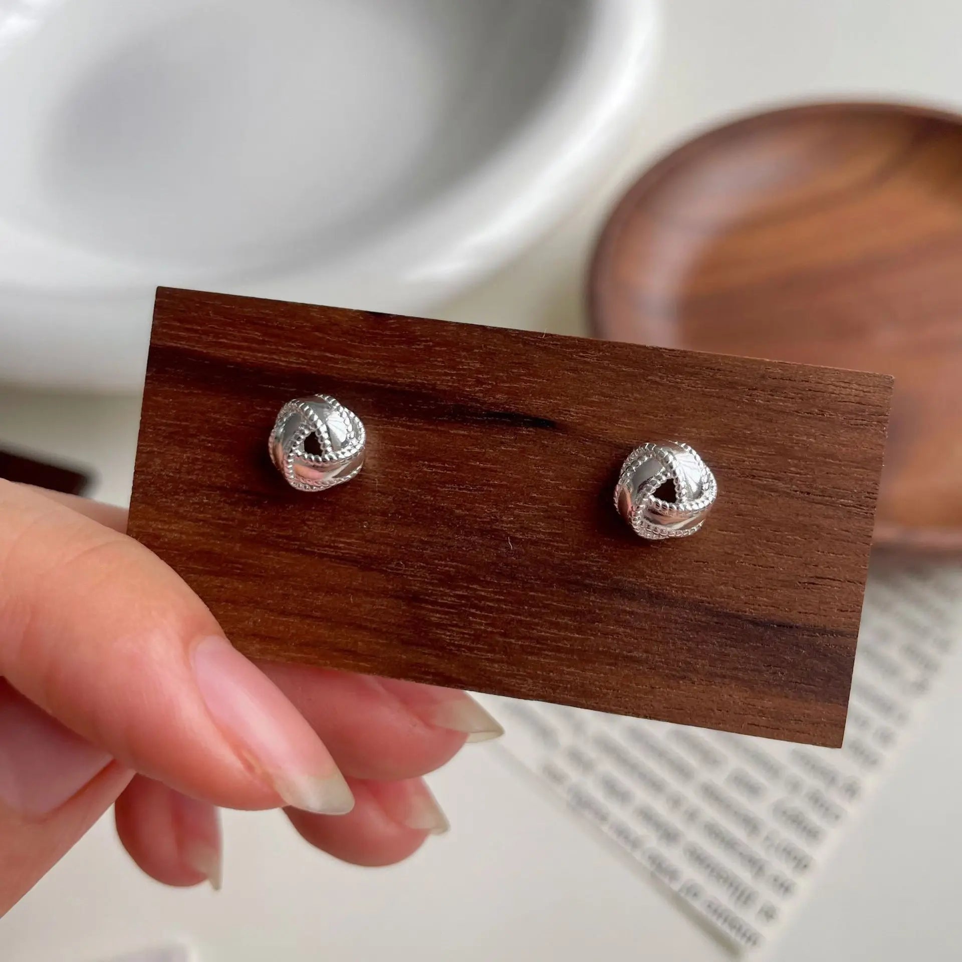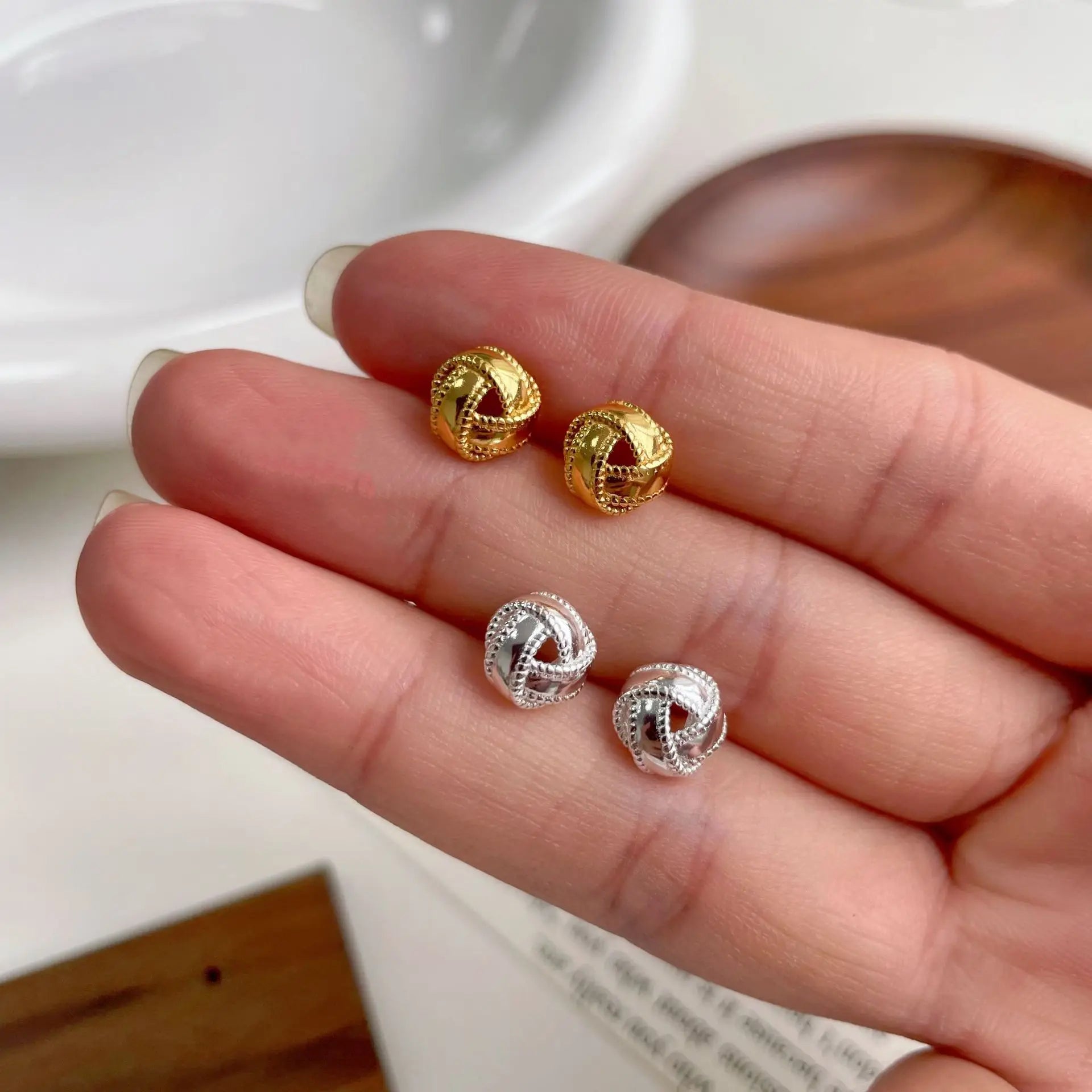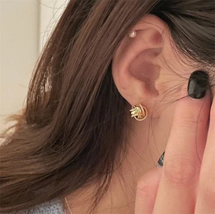 925 Sterling Silver Compact sweet versatile and stylish stud earrings retro exquisite winding minimalist design