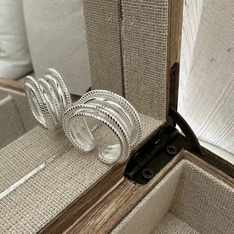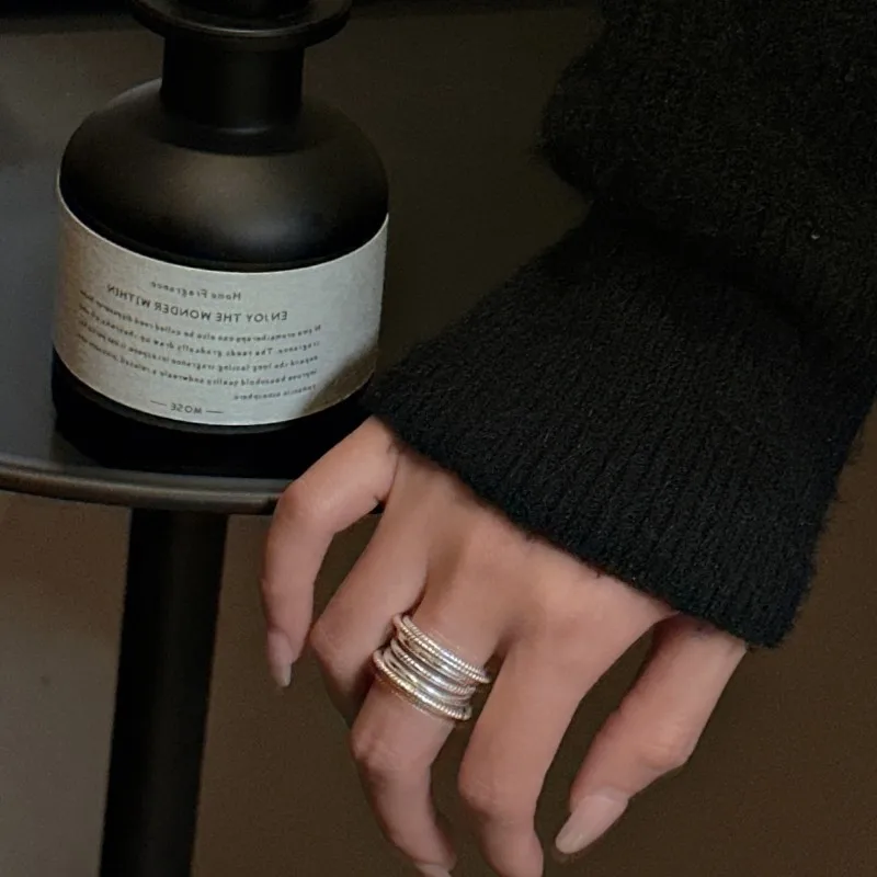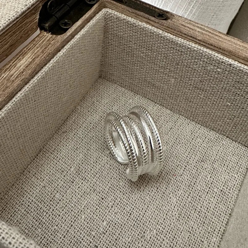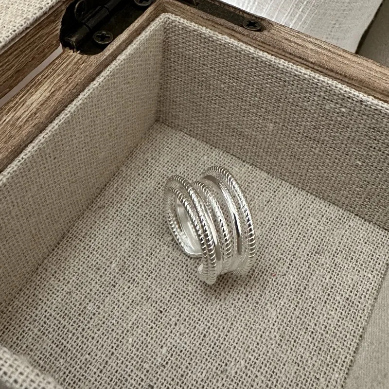 925 Sterling Silver Multi layer Line Ring Korean Edition Fashionable Personalized Simple Texture Ring