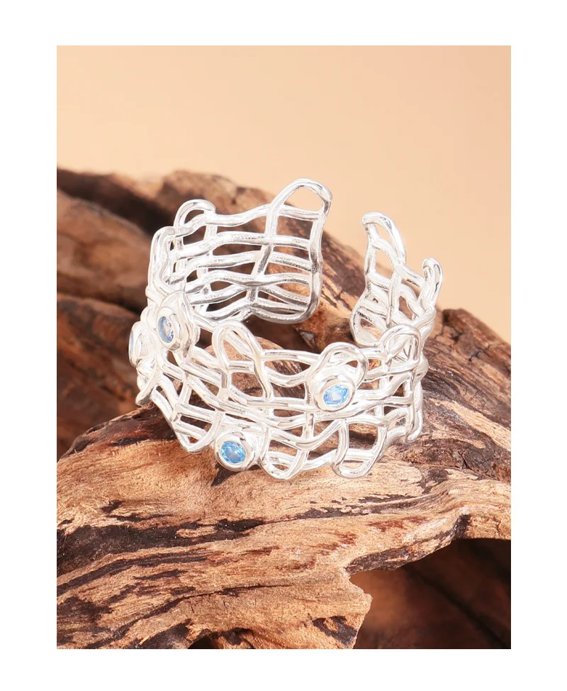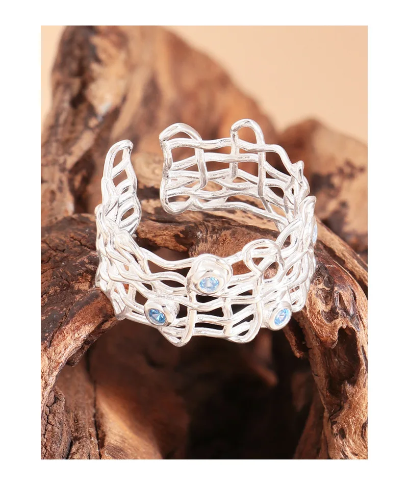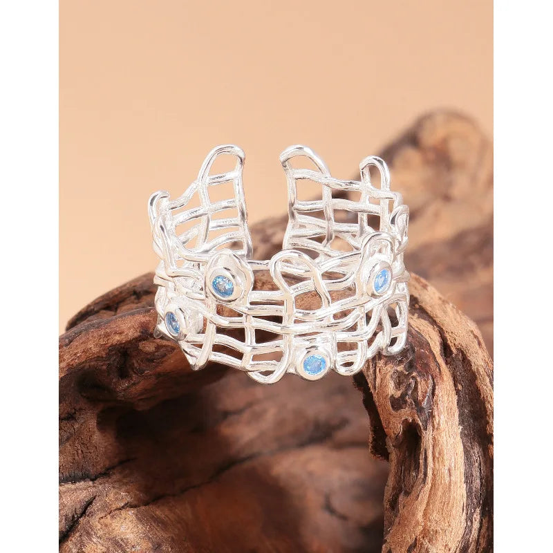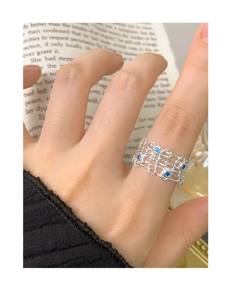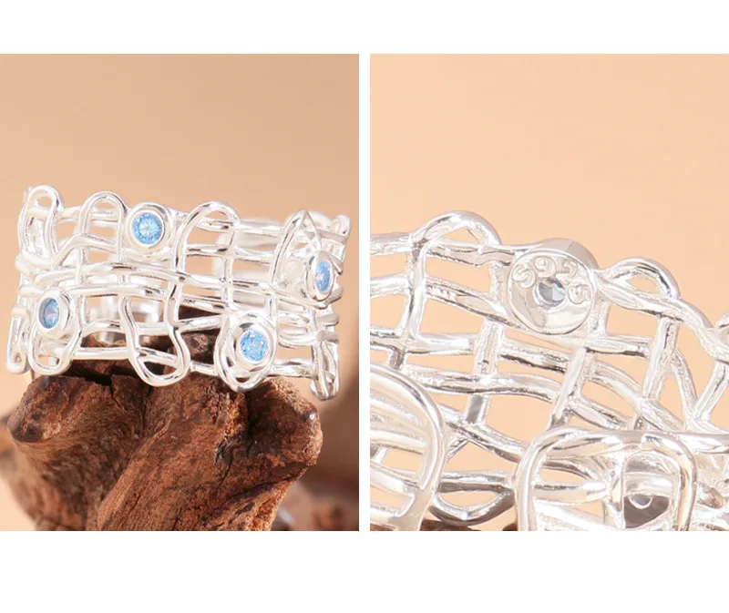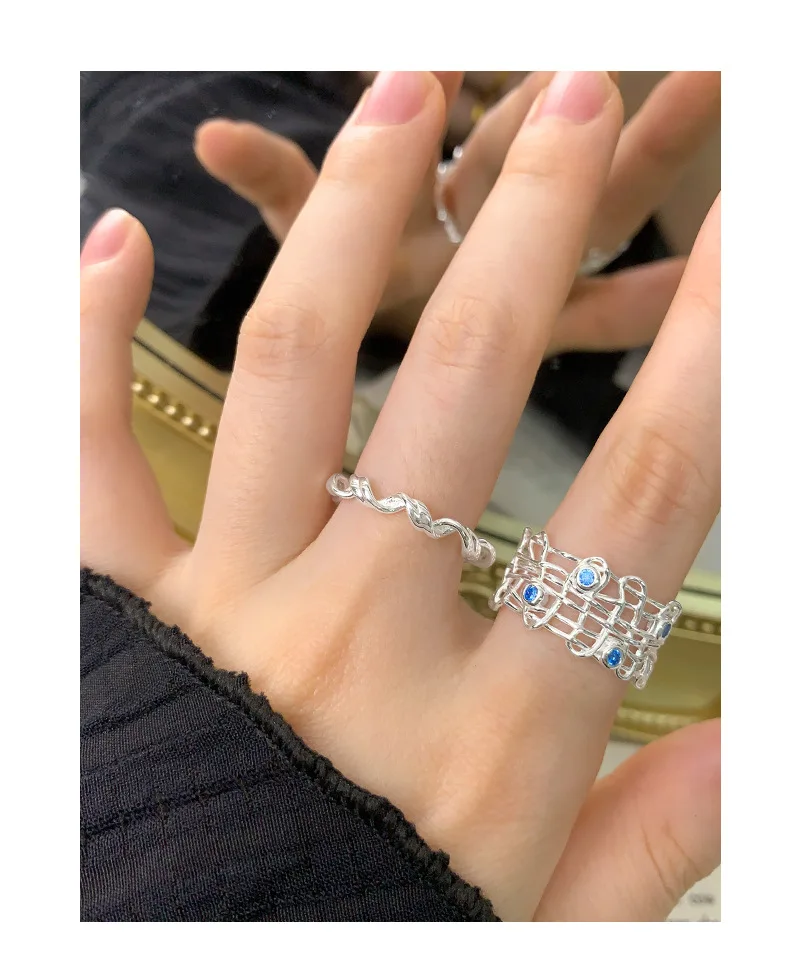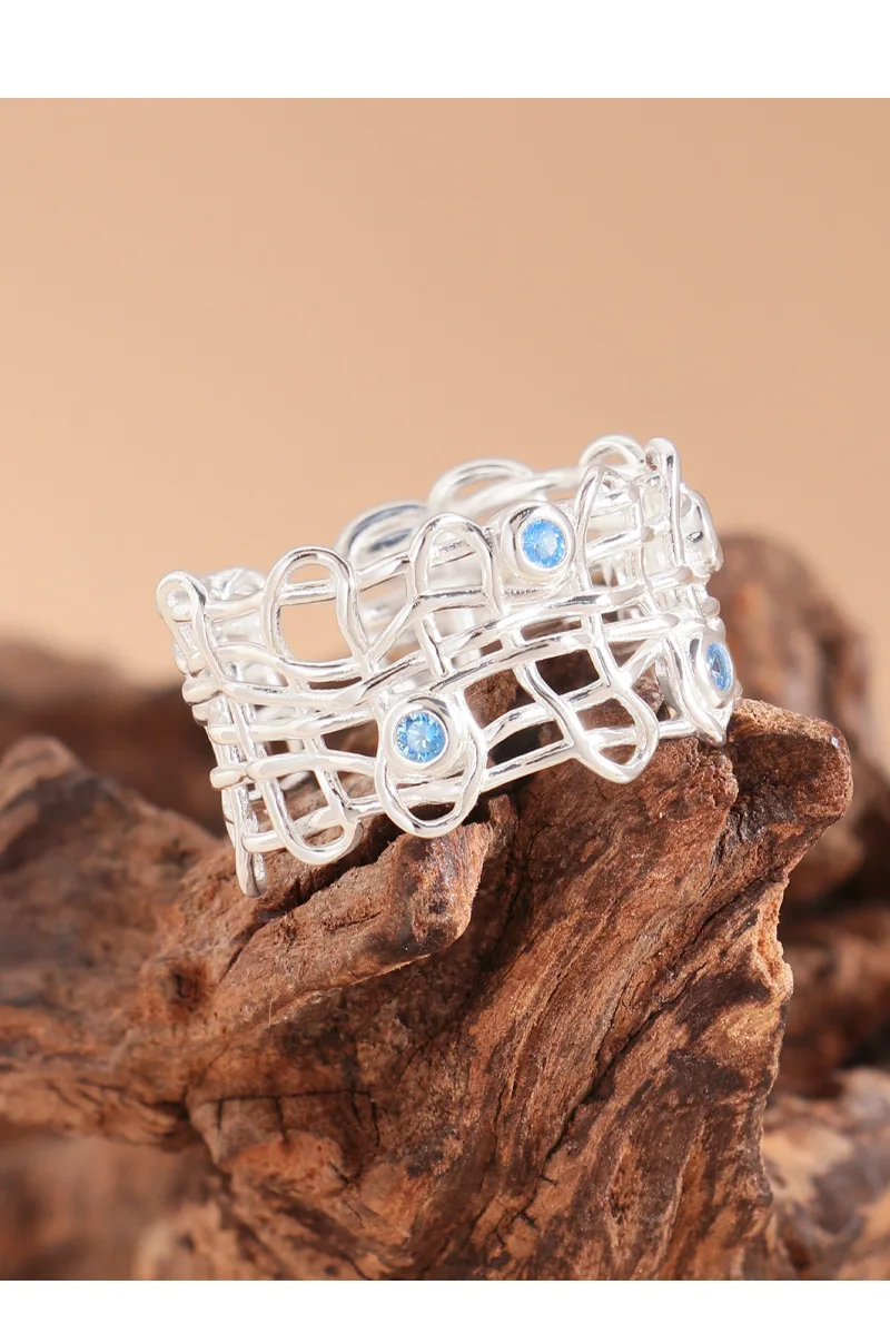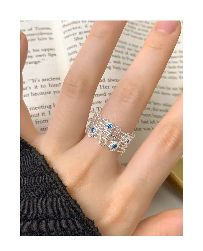 S925 Sterling Silver Weaving Grid Open Ring Female Resizable Opening Ring For Women Birthday Gift