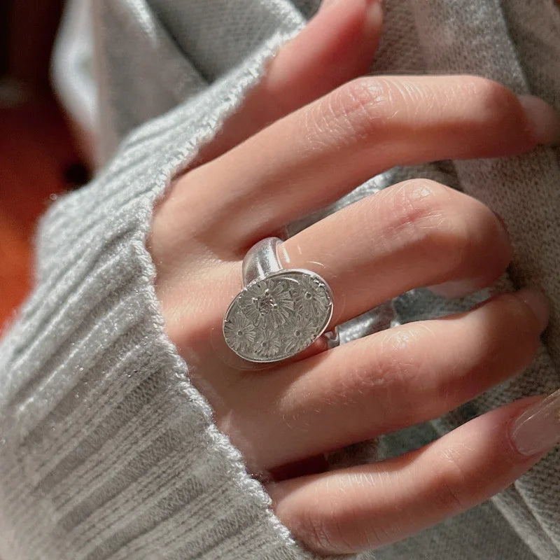 S925 Sterling Silver Zircon small flower simple ring Korean version Korean style retro ring wholesale