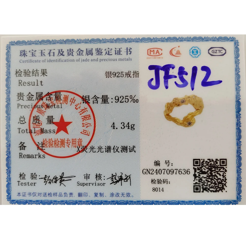 S925 sterling silver certification