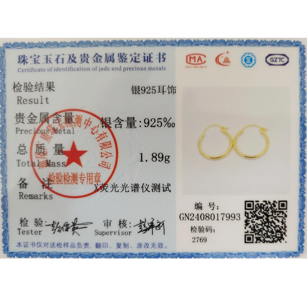 S925 sterling silver certification