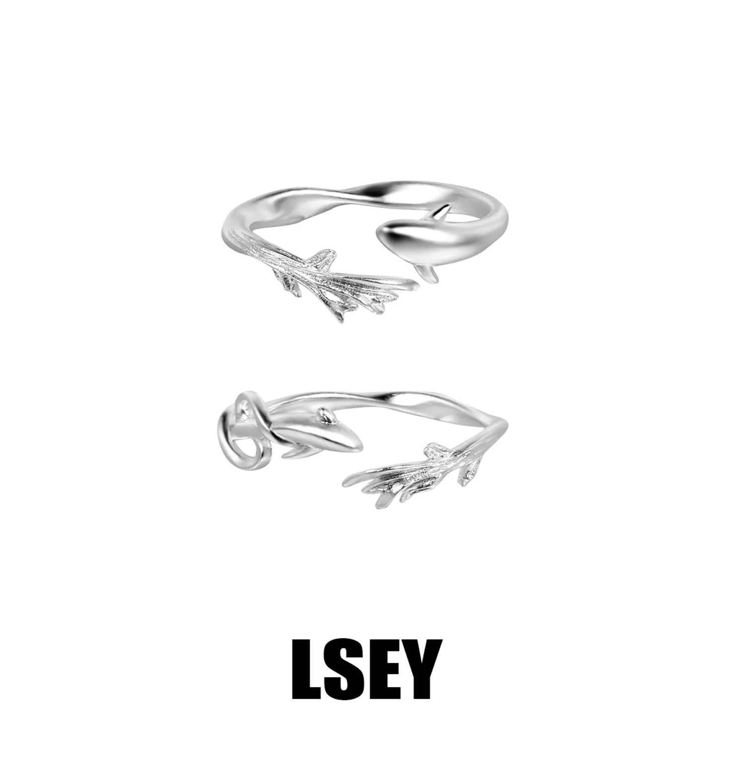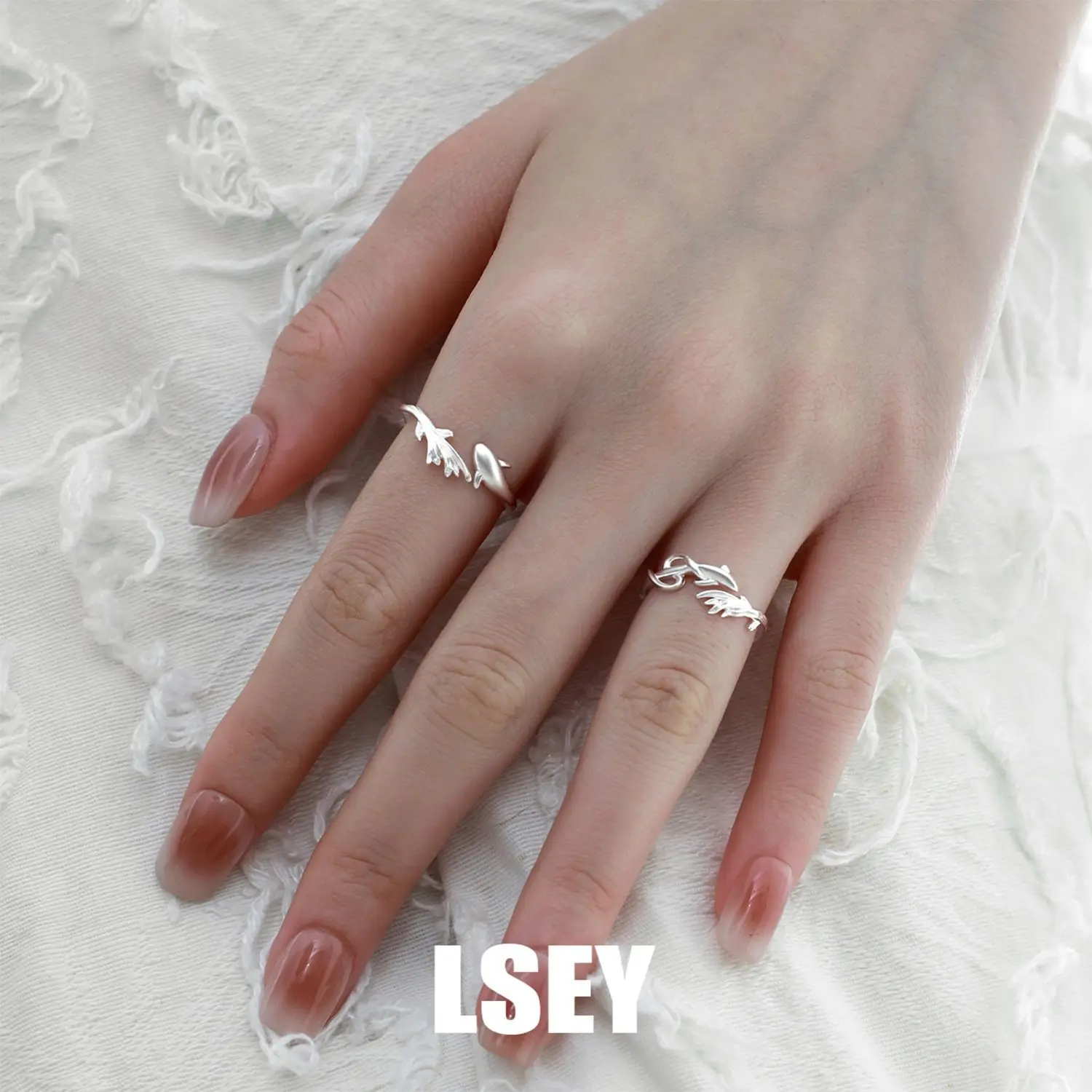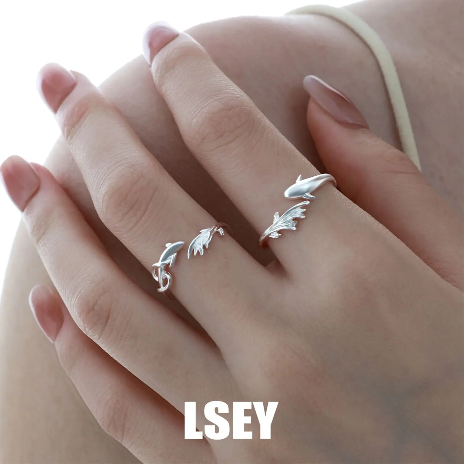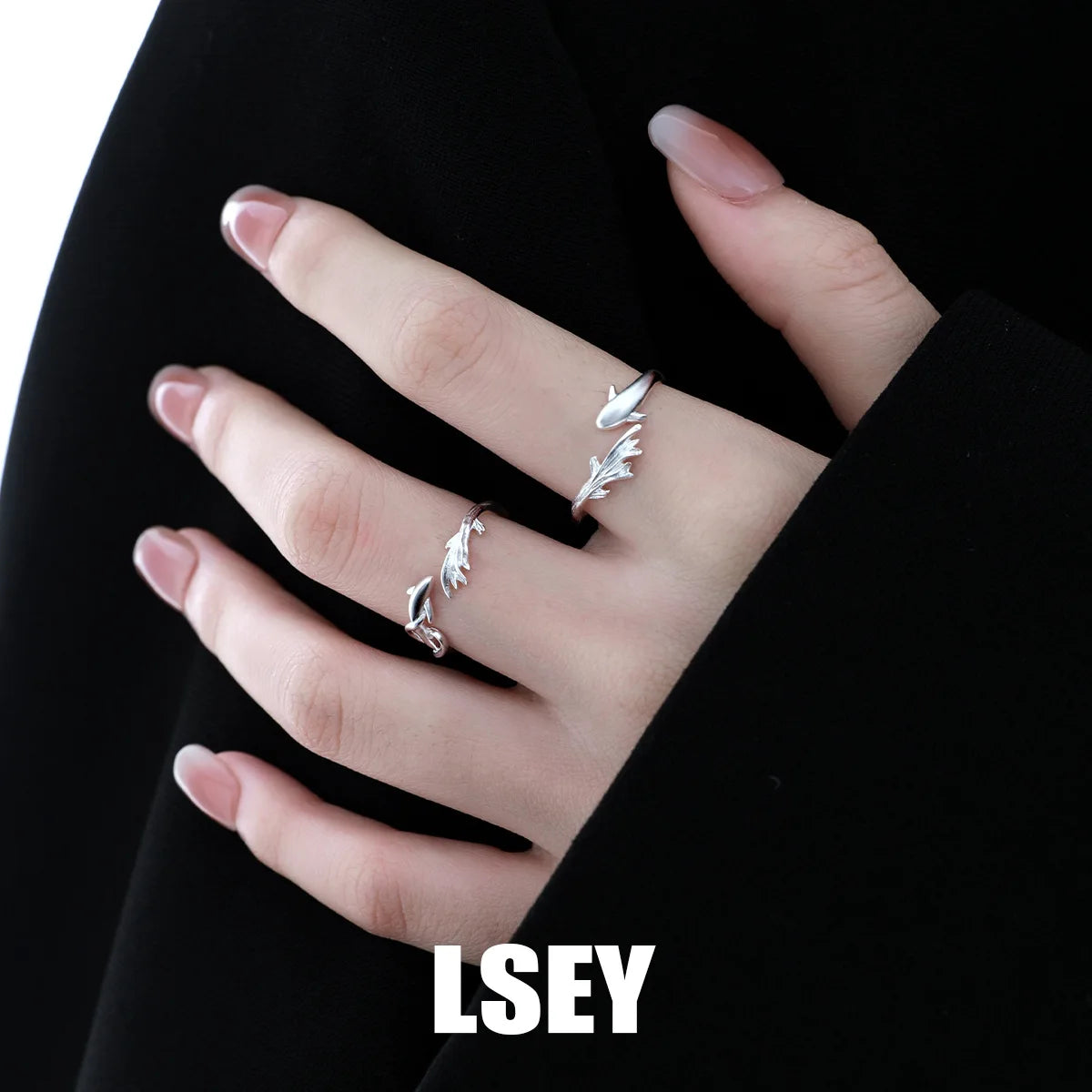 Simple INS 925 sterling silverPisces Chasing the Wave Lover Ring Sterling Silver Original Simple Pair Ring Valentine's Day Gift