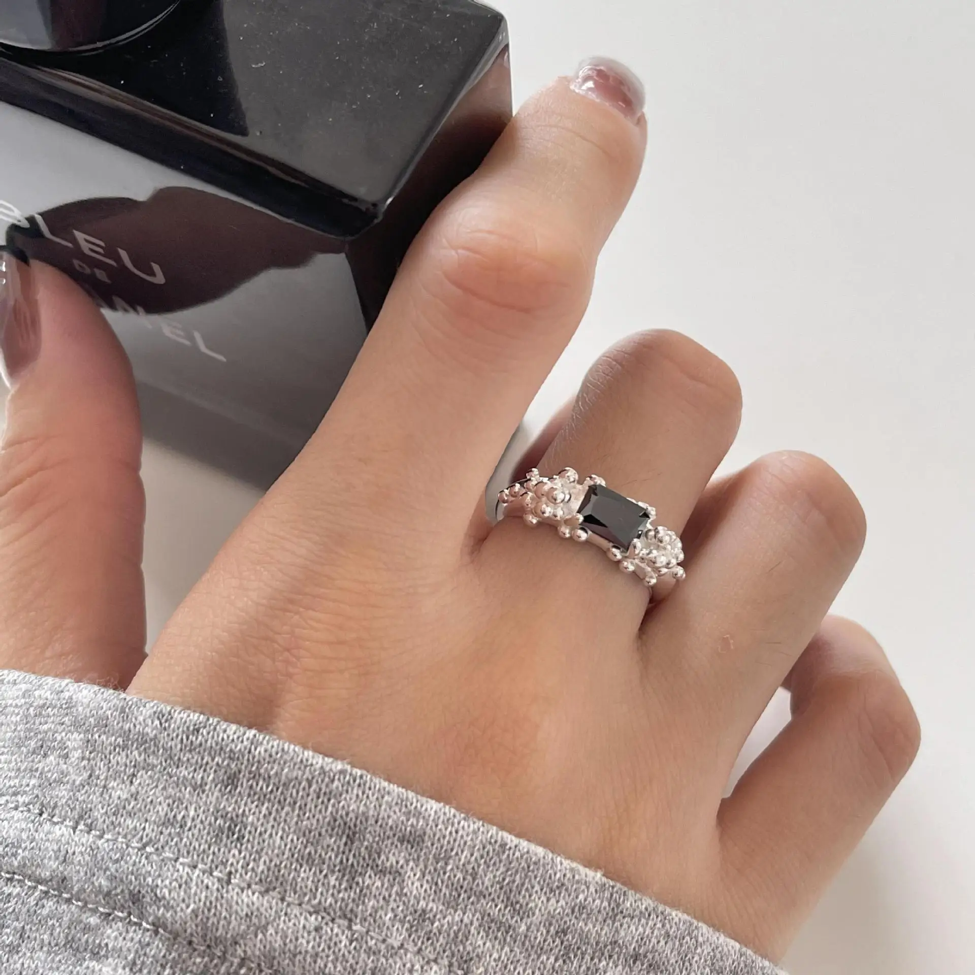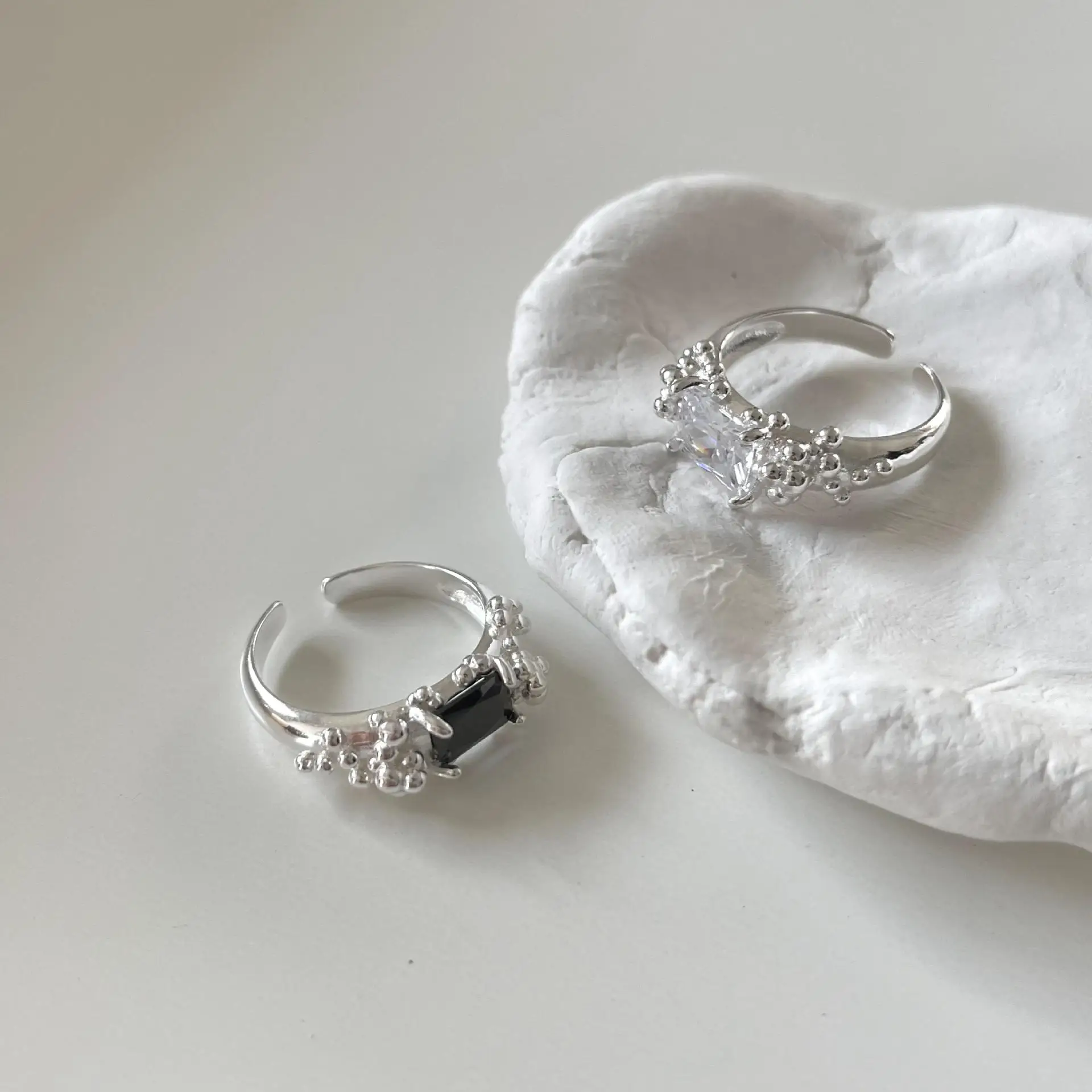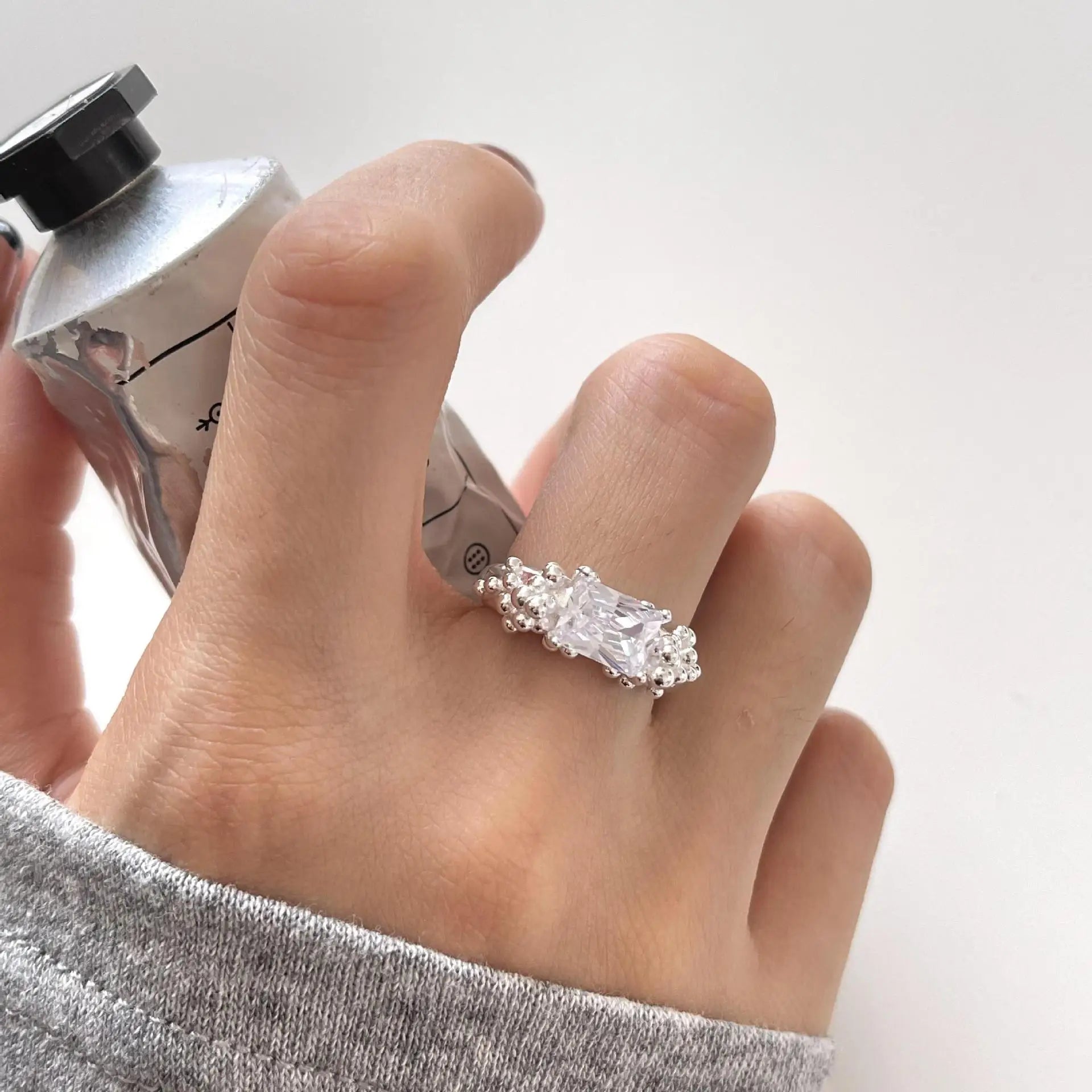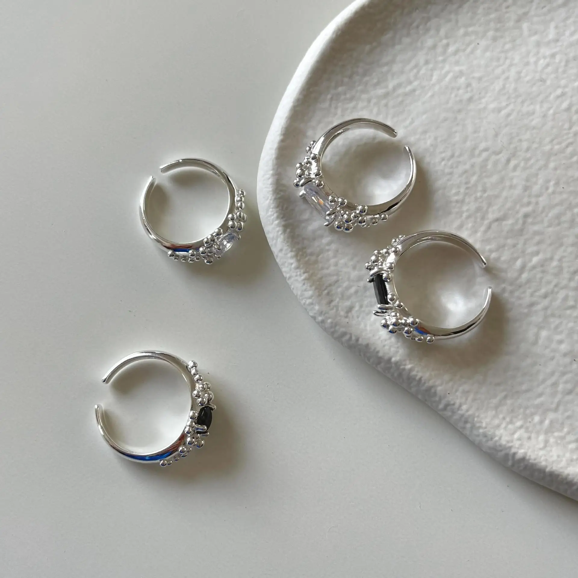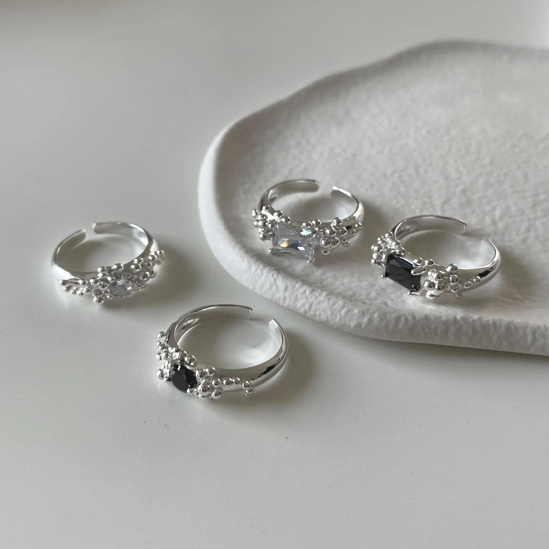 Small and Simple Bubble Zircon S925 Sterling Silver Ring for Women's Irregular and Simple Ring